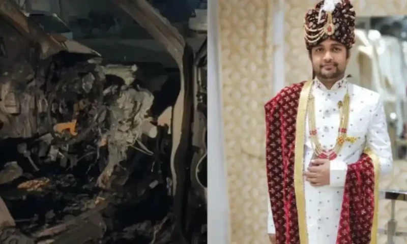 بھارت کے دارالحکومت دہلی میں ایک نوجوان اپنی شادی کے دعوت نامے تقسیم کرنے جا رہا تھا، کار میں آگ لگنے کے باعث ہلاک ہو گیا۔