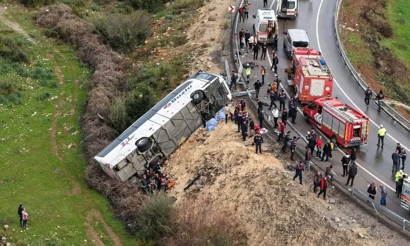 ترک حکام کا کہنا ہے کہ واقعے کی تحقیقات شروع کر دی گئی ہیں، جبکہ ابتدائی شواہد کے مطابق بارش کے باعث پھسلن اور تیز رفتاری حادثے کی بنیادی وجہ قرار دی جا رہی ہے۔