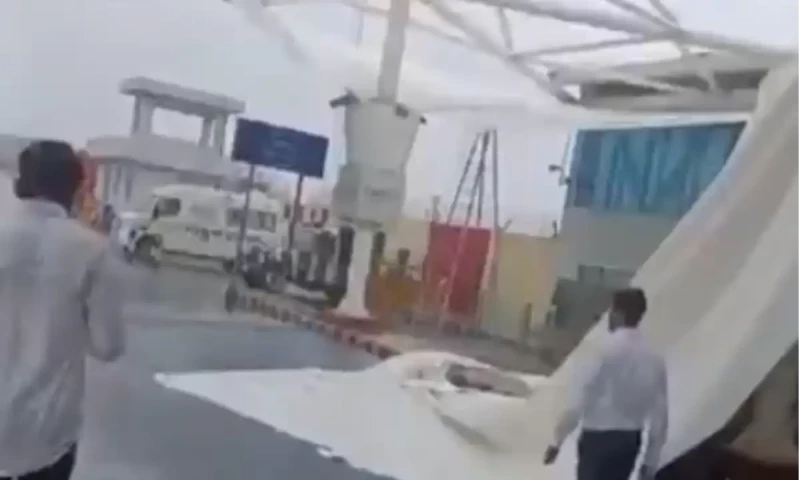 بھارت کی ریاست گجرات کے شہر راج کوٹ میں آج صبح ایئر پورٹ کے باہر مسافروں کے پک اینڈ ڈراپ ایریا کی چھت گرگئی۔ اس حادثے میں کوئی زخمی نہیں ہوا۔ تاہم بی جے پی اور کانگریس میں ٹھن گئی ہے۔
