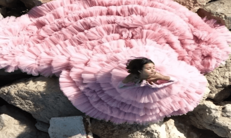میڈیا رپورٹس کے مطابق فیشن کریٹر نینسی نے اپنے گلابی گاؤن کے لئے 1000 میٹر فیبرک کااستعمال کیا جس کا وزن کم و بیش 20 کلو بتایا گیا ہے۔ اور اس کو تیار کرنے میں ایک ماہ لگے ہیں۔